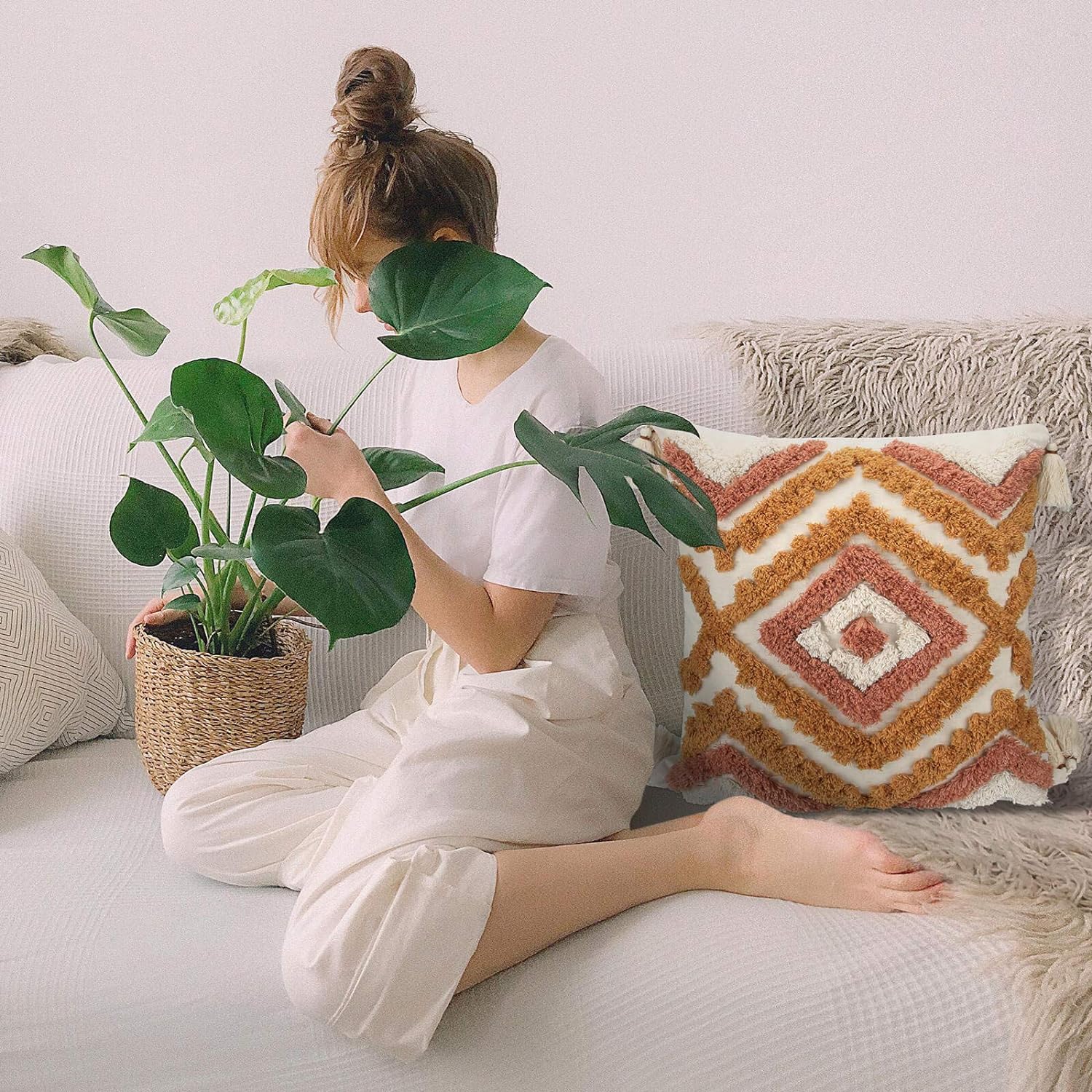 Fall Orange Tassle Pillow Cover
