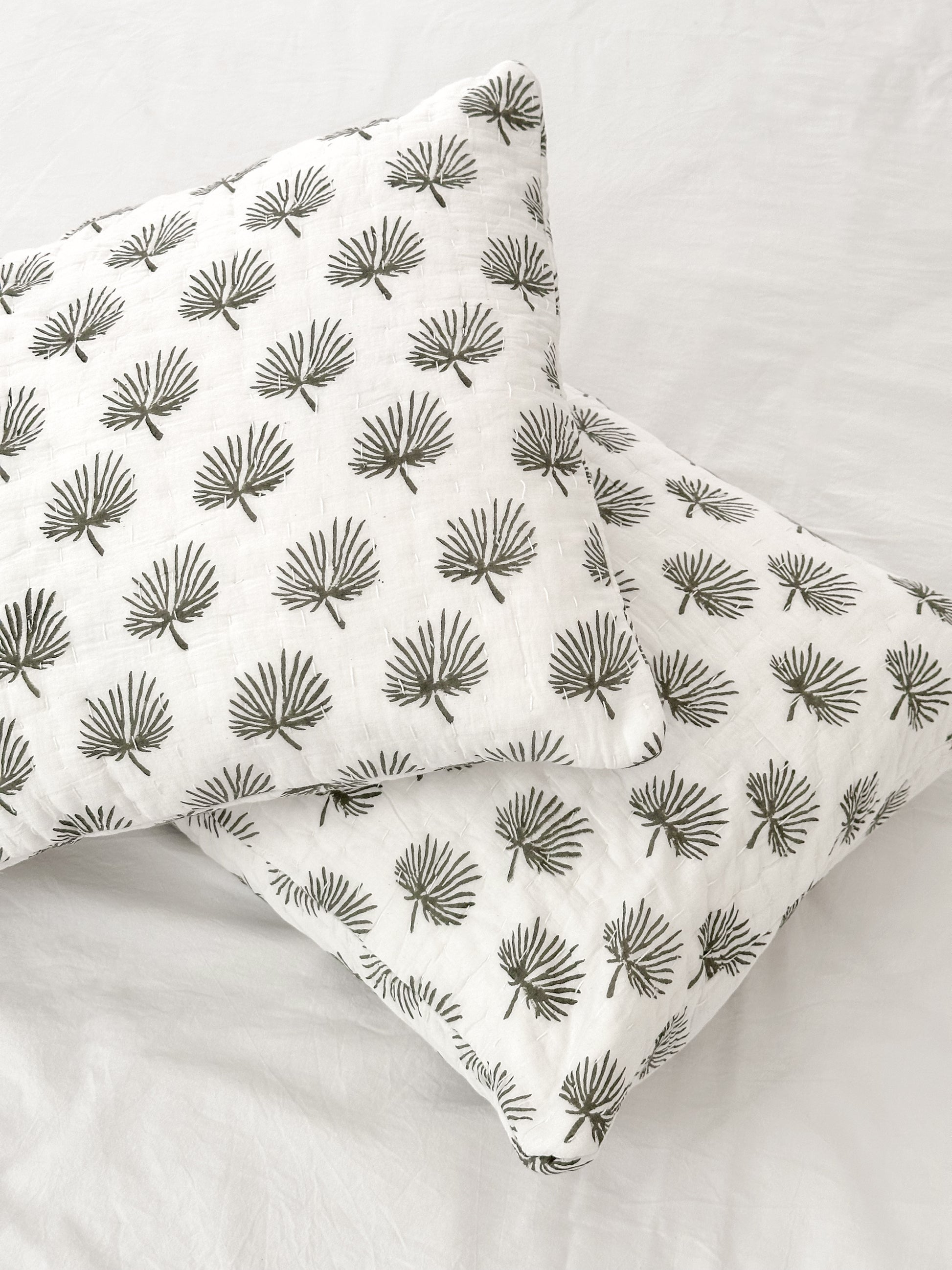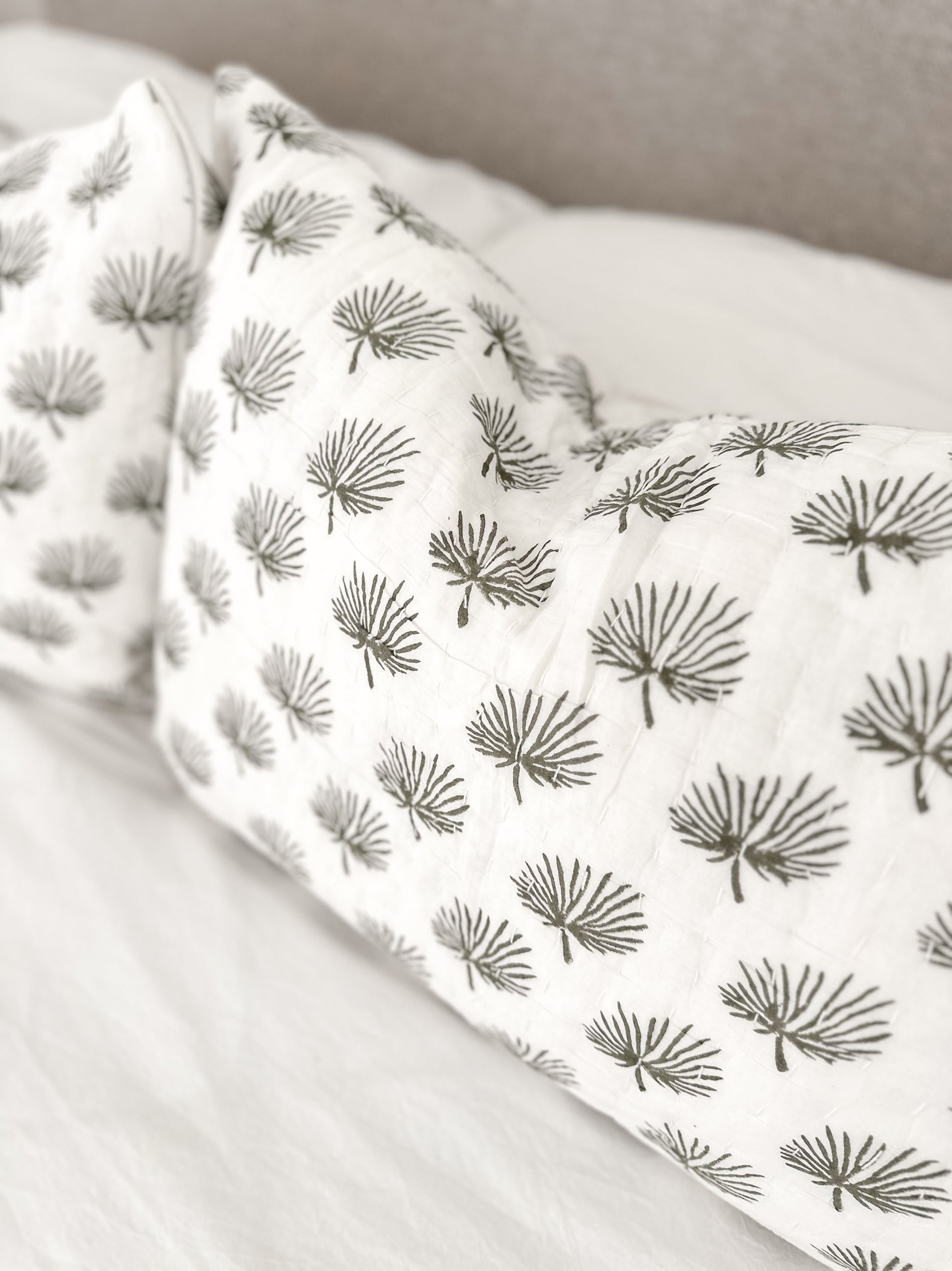 Rhapis Palm Leaf Kantha Cot Quilt (optional fitted sheet and pillowcase)